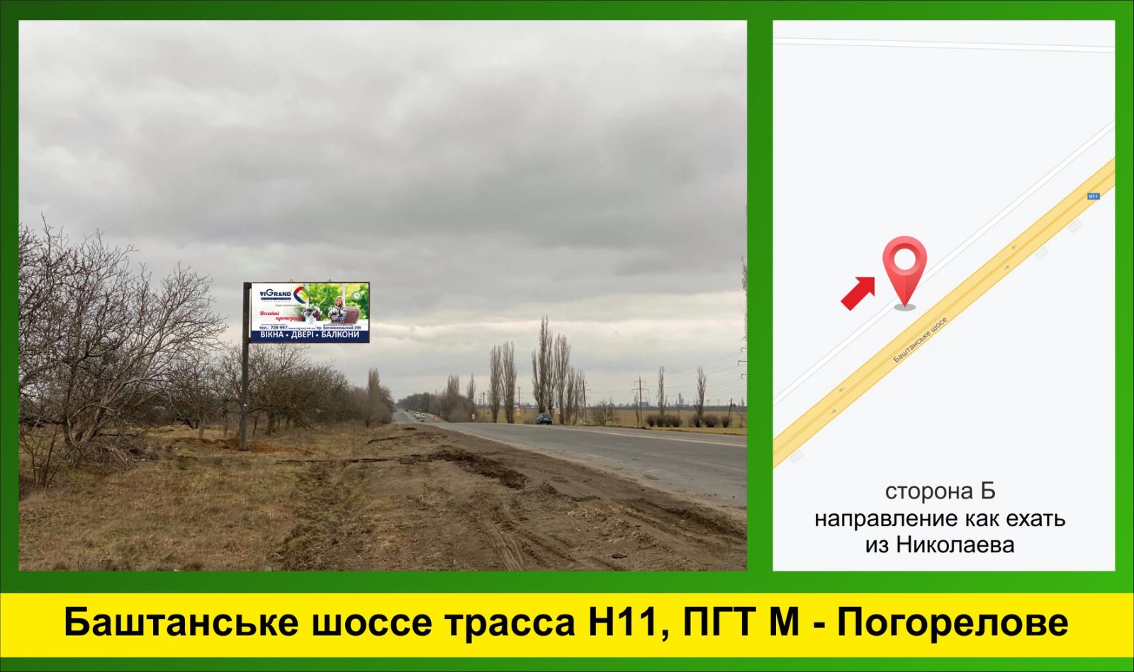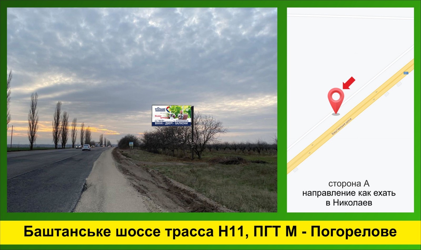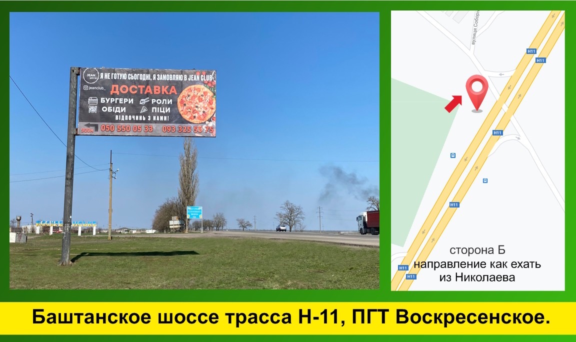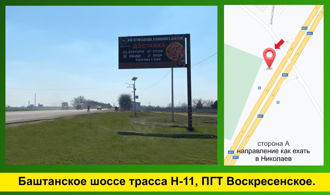| 11. Баштанське шосе, траса Н11, СМТ Воскресенське, Сторона А |